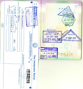 Ya, meski Thailand, sebagai sesama negara ASEAN telah menerapkan kebijakan “bebas visa” 30 hari kunjungan bagi seluruh pemegang paspor Indonesia. Namun perlu juga anda paham seperti apa itu visa, termasuk “free visa” kunjungan sekalipun. Paling tidak anda tahu medan sebelum berperang…koq se_ngeri itu ya…maklum pengalaman tak terlupakan saya pertama ke Thailand hampir saja dideportasi…kaya TKI ilegal saja ya…hehehe