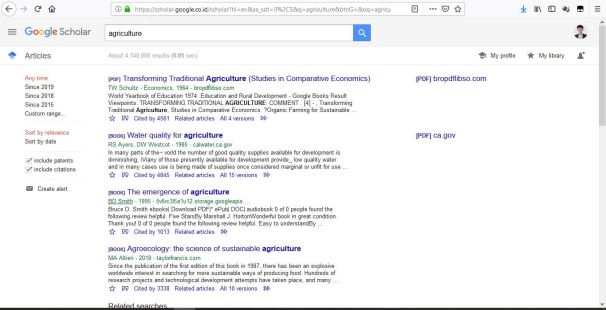 Hasil pencarian di Google Scholar dengan kata kunci “agriculture”
