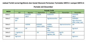 - Juli: FPAE, JGP (Sinta 2), JAA (Sinta 4), Jurnal Agribisnis, JIA (Sinta 5), Agricore (Sinta 6)